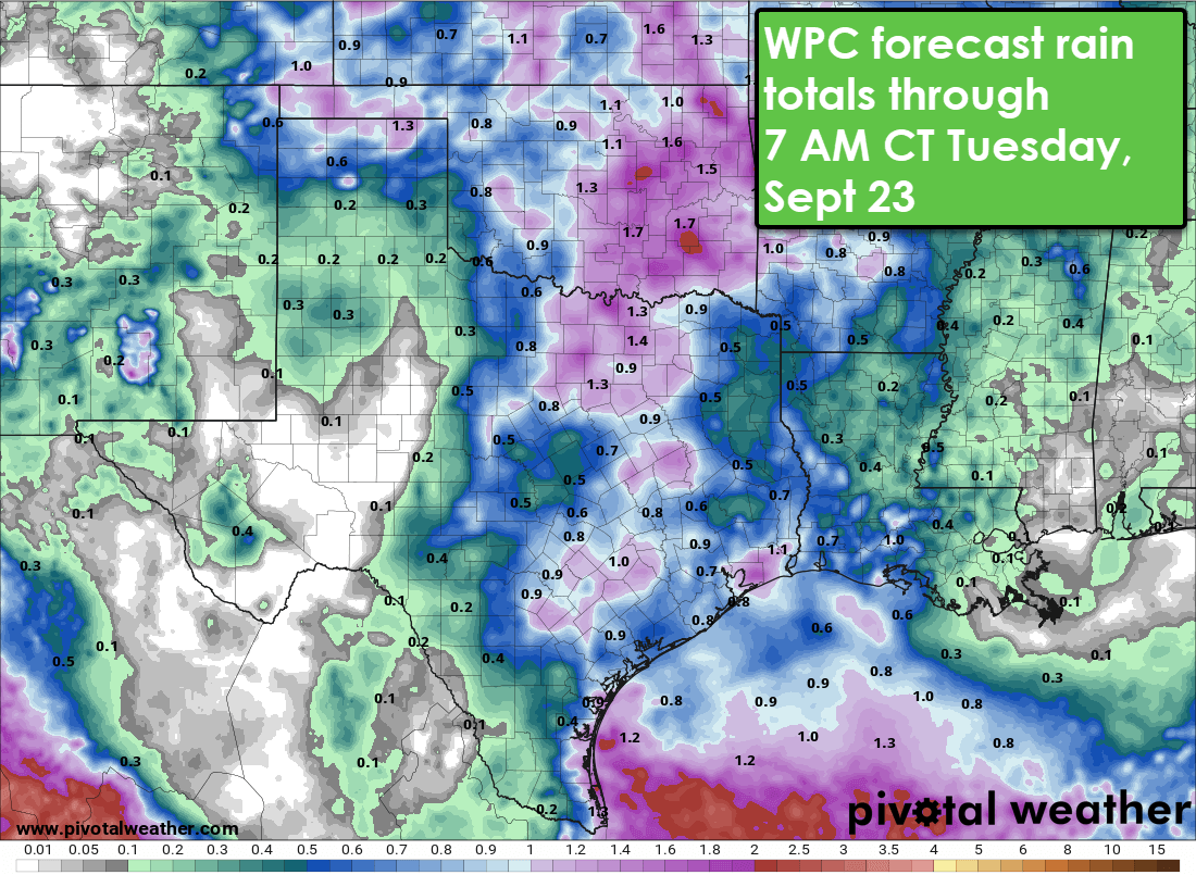 Forecast rainfall totals from the Weather Prediction Center show the potential for one inch or more in parts of Texas by early next week.